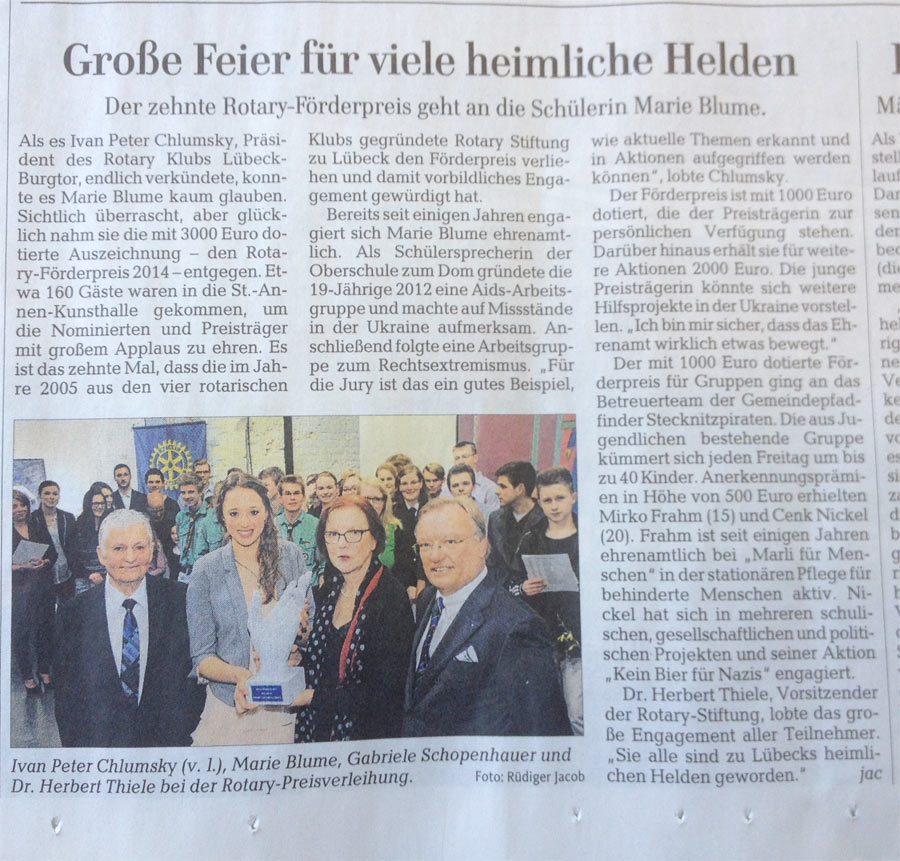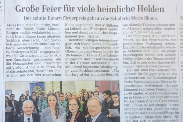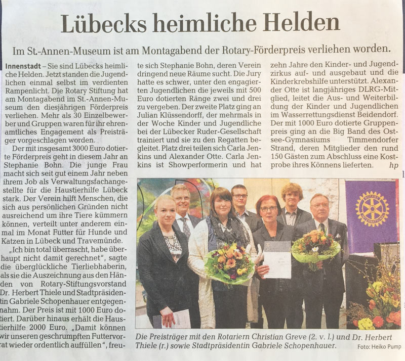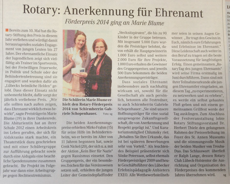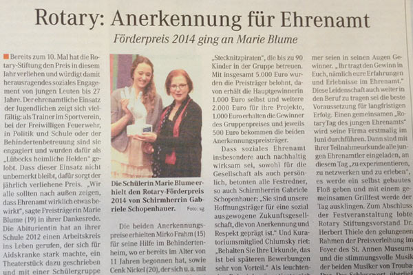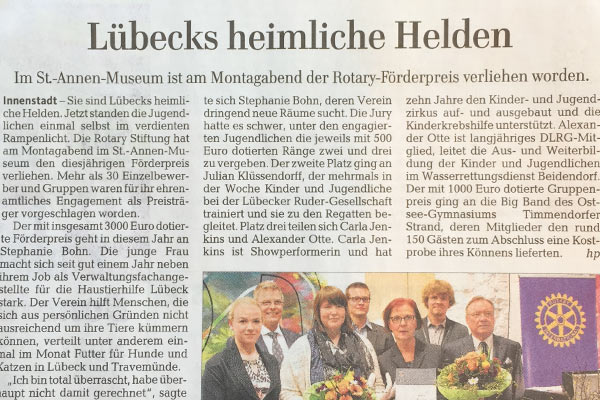 "So nennt die Rotary Stiftung zu Lübeck die jungen Ehrenamtler, die sie jedes Jahr mit ihrem Förderpreis auszeichnet."